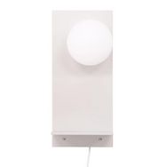 Informations Techniques : Dimensions : L. 20 x l. 17 x H. 45 cm Matières : Verre, Métal & PVC Spécificités : Pratique & Tendance Applique murale déco Avec étagère et dôme en verre Forme rectangulaire Douille : G9 Puissance : 5 W Poids : 1,5 kg Couleur : Blanc