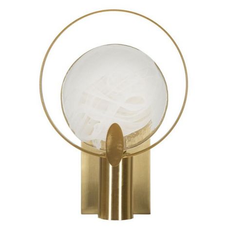 Informations Techniques : Dimensions : L. 20 x l. 10 x H. 29 cm Matières : Métal & Verre Spécificités : Élégante & Utile Applique murale ronde Imprimé géométrique Ampoule non incluse Douille : E14 Puissance : 40 W Voltage : 220 V Fréquence : 50 Hz Poids : 0,8 kg Couleur : Or & Transparent