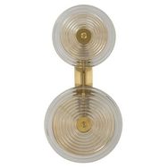 Informations Techniques : Dimensions : L. 25 x l. 10 x H. 52 cm Matières : Métal & Verre Spécificités : Chic & Utile Applique murale design Abat-jours disques ronds Ampoules non incluses Douille : E14 Puissance : 40 W Voltage : 220 V Fréquence : 50 Hz Poids : 2 kg Couleur : Or, Marron & Transparent