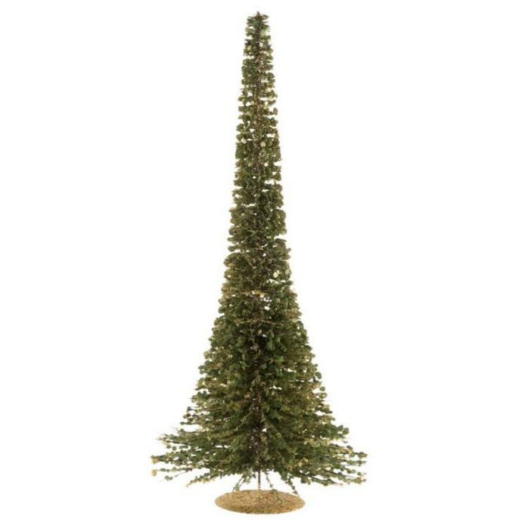 Informations Techniques : Dimensions : L. 20 x l. 20 x H. 50 cm Matière : Plastique Spécificités : Pratique & Utile Arbre de Noël A Poser Forme Ronde Avec Paillettes Poids : 0,194 kg Couleur : Vert & Or
