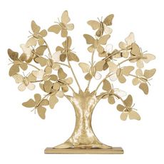 Arbre Déco en Métal Papillons 31cm Or