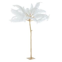 Arbre Déco en Métal Plumes 190cm Or & Blanc