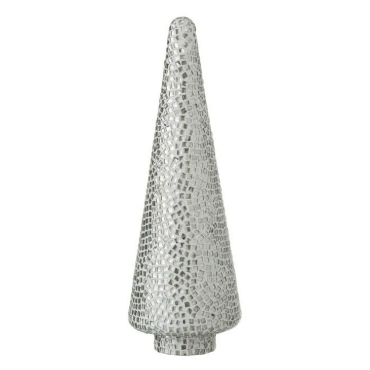 Informations Techniques : Dimensions : D. 13 x H. 41 cm Matière : Verre Spécificités : Tendance & Moderne Objet déco Forme Arbre Motif Mosaïques Facile d'utilisation & d'entretien Poids : 1,05 kg Couleur : Argent & Blanc
