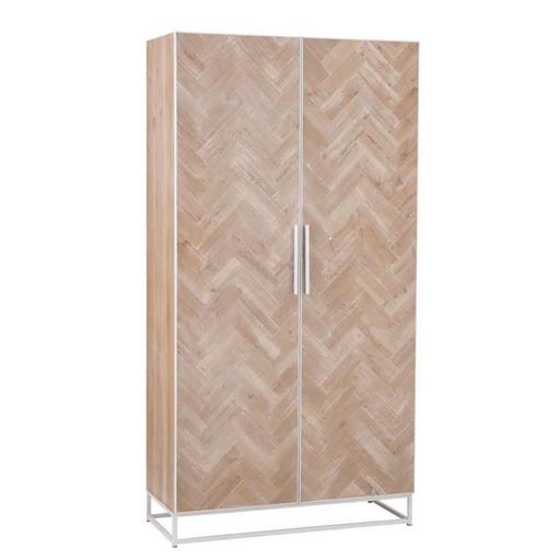 Informations Techniques : Dimensions : L. 95 x l. 42,5 x H. 185 cm Matières : Bois & Métal Spécificités : Tendance & Déco Armoire Design Sur Pied 2 Portes Poids : 72 kg Couleur : Naturel & Blanc