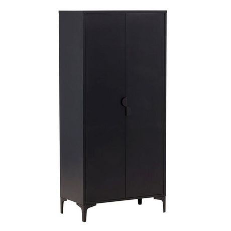 Informations Techniques : Dimensions : L. 85 x l. 45 x H. 183 cm Matière : Acier Spécificités : Design & Utile Armoire 2 portes sur pied Avec étagères et penderie Nombre de colis : 1 Poids max supporté : 30 kg Poids : 36 kg Couleur : Noir