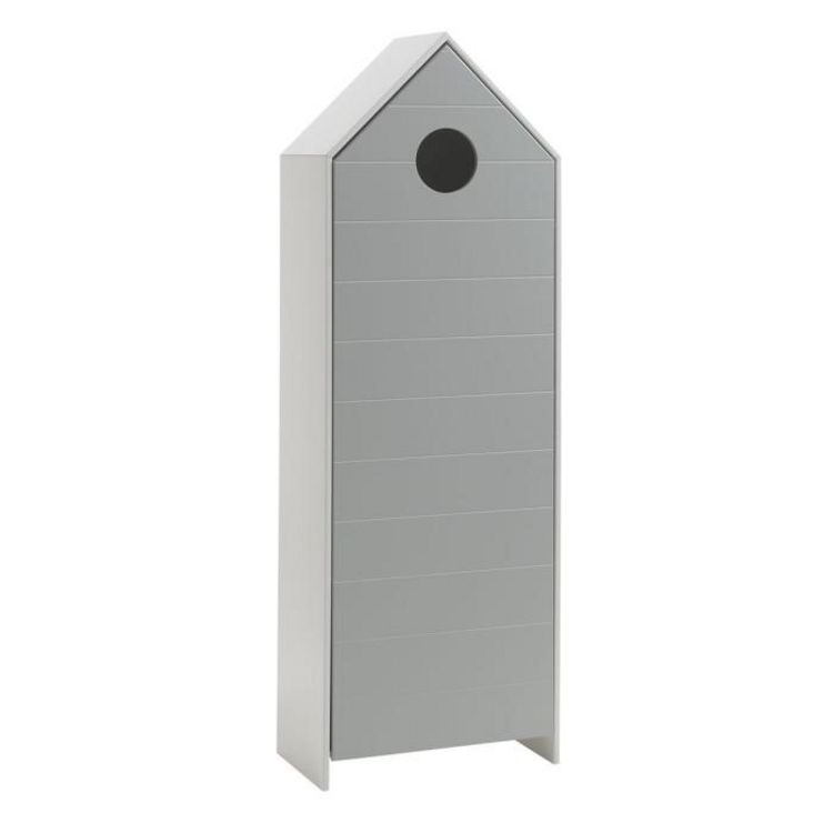 Informations Techniques : Dimensions : L. 57,6 x l. 37 x H. 171,5 cm Matières : Pin massif & MDF Spécificités : Design original en forme de pointe 4 Niveaux 1 Porte A partir de 4 ans Certification label FSC (Forest Stewardship Council) Nombre de colis : 1 Poids : 32,6 kg Couleur : Gris & Blanc