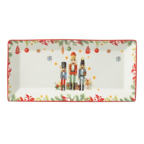 Informations Techniques : Dimensions : L. 33,2 x l. 16,2 x H. 2,5 cm Matière : 100% Céramique Spécificités : Festive & Utile Assiette de présentation de Noël Motifs casse-noisettes Forme rectangulaire Boîte cadeau incluse Compatibles : Lave-vaisselle et micro-ondes Poids : 0,89 kg Couleur : Blanc