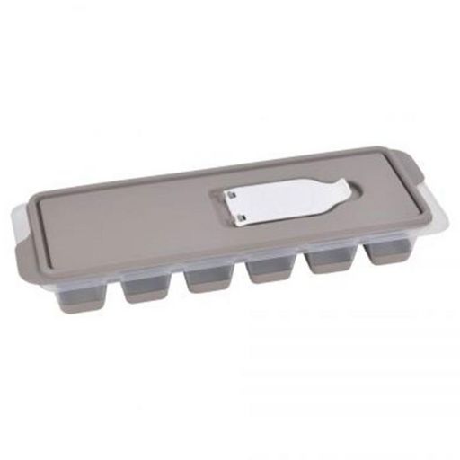 Informations Techniques : Dimensions : L. 25 x l. 8,5 x H. 4 cm Matières : Silicone & Plastique Spécificités : Pratique & Utile Bac à glaçons Avec couvercle et opercule Fond en silicone Démoulage facile Poids : 0,1 kg Couleur : Taupe