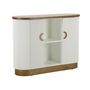 Informations Techniques : Dimensions : L. 121 x l. 41 x H. 90 cm Matières : MDF, Bois (Frêne) & Métal Spécificités : Pratique & Robuste Buffet Ovale Design Avec 2 portes et 2 étagères Forme arrondie Effet côtelé Poids : 36,2 kg Couleur : Blanc & Naturel