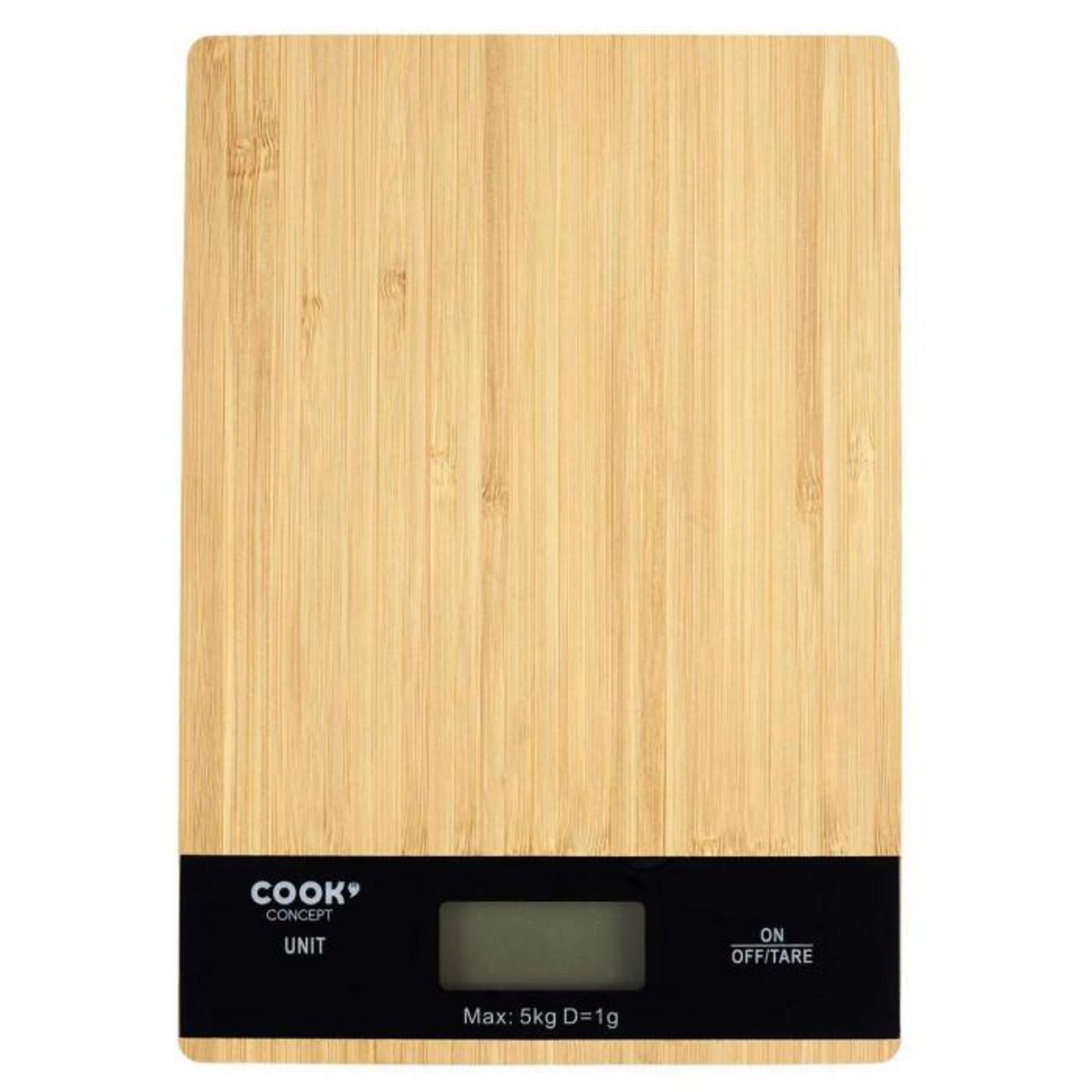 Informations Techniques : Dimensions : L. 20 x l. 15 x H. 1,8 cm Matière : Bambou Spécificités : Pratique & Utile Balance de Cuisine Électronique Forme Rectangulaire Fonction Tare Charge maximale : 5 kg Précision 1g Pile & Notice Incluses Facile d'Utilisation Poids : 0,230 kg Couleur : Marron