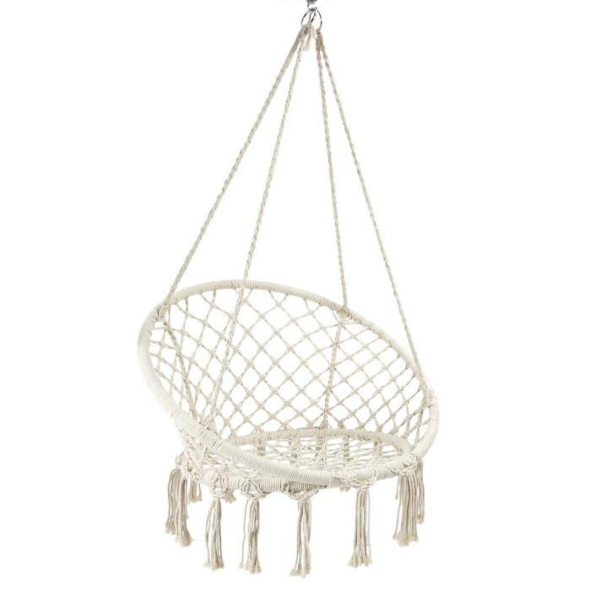 Informations Techniques : Dimensions : L. 80 x l. 82 x H. 120 cm Matières : Polyester, Coton, Métal, Fer & Viscose Spécificités : Pratique & Utile Balancelle Déco Design Macramé Assise Confortable A Suspendre Poids : 2,65 kg Couleur : Beige
