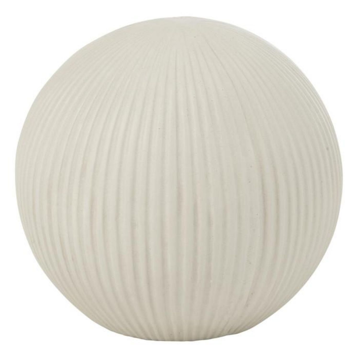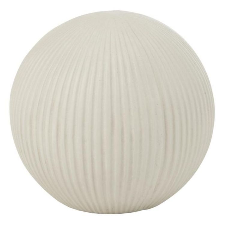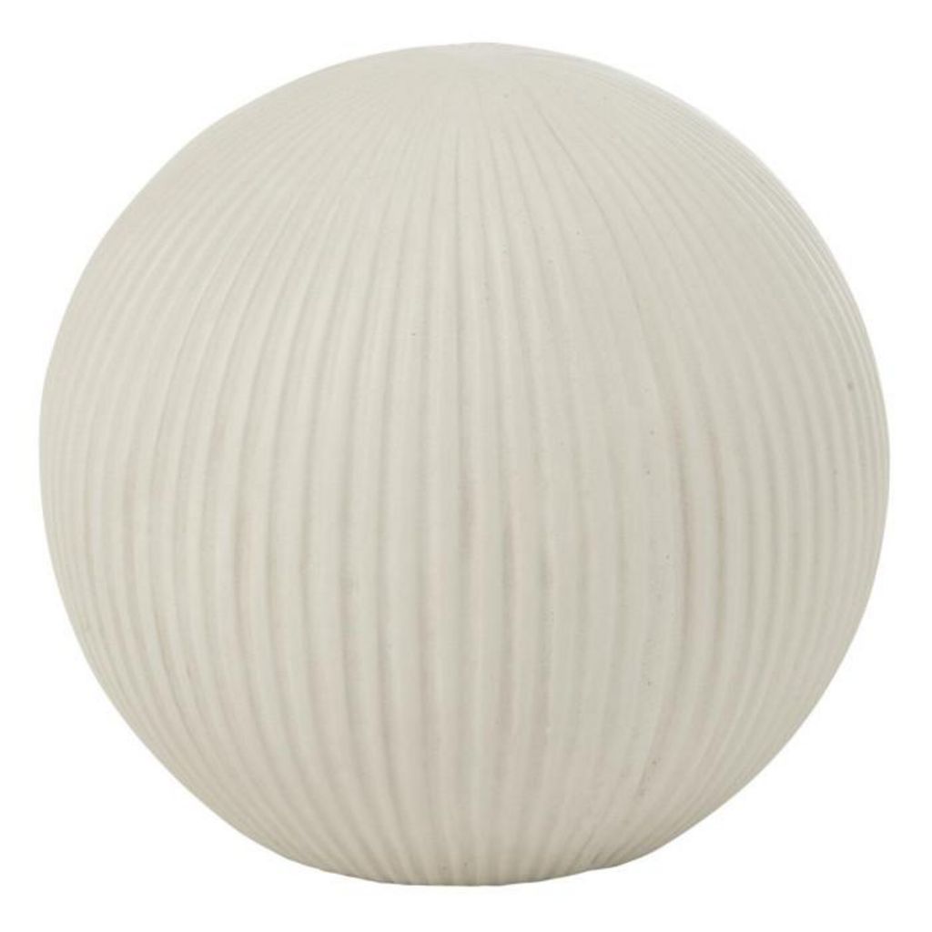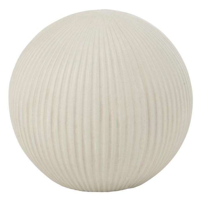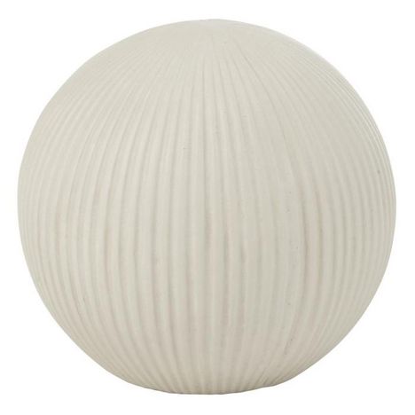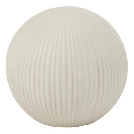 Informations Techniques : Dimensions : D. 24,5 x H. 22,5 cm Matières : 85% Fibre d'Argile & 15% Fibre de Verre Spécificités : Déco & Moderne Balle ronde à poser Design rainuré Usage intérieur/extérieur Poids : 2,33 kg Couleur : Blanc