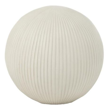 Informations Techniques : Dimensions : D. 31,5 x H. 29,5 cm Matières : 85% Fibre d'Argile & 15% Fibre de Verre Spécificités : Déco & Moderne Balle ronde à poser Design rainuré Usage intérieur/extérieur Poids : 3,44 kg Couleur : Blanc