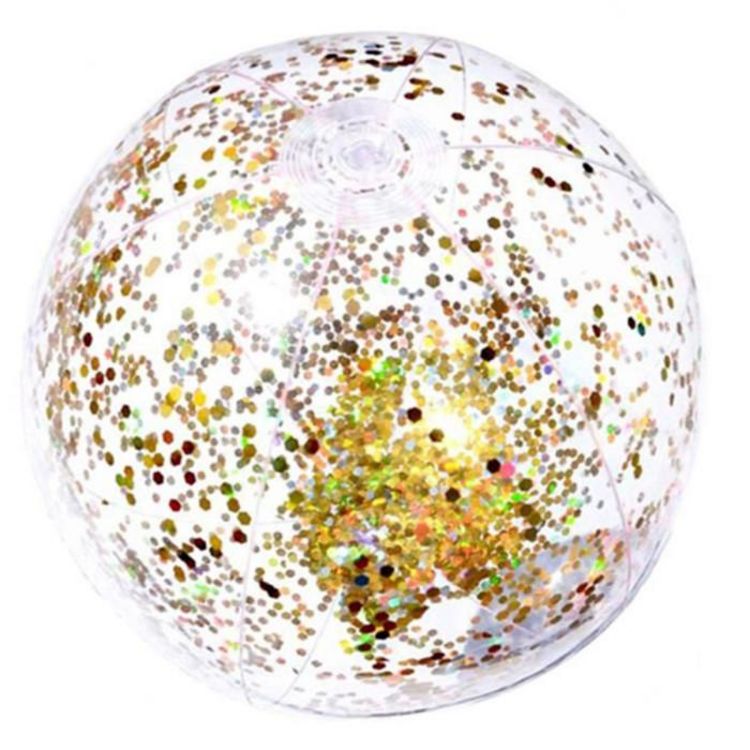 Informations Techniques : Dimensions : D. 35 cm Matière : PVC Spécificités : Original & Design Ballon Gonflable A Paillettes Couleur : Or