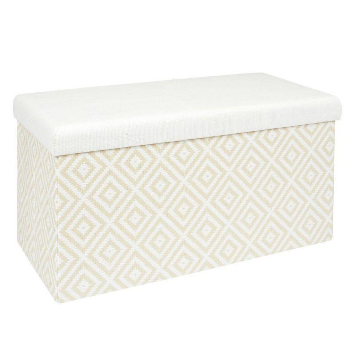 Informations Techniques : Dimensions : L. 76 x l. 38 x H. 38 cm Matière : Papier Spécificités : Pratique & Utile Banc Coffre Pliable Forme Rectangulaire Effet Tressé A Motifs Poids : 5,4 kg Couleur : Blanc