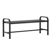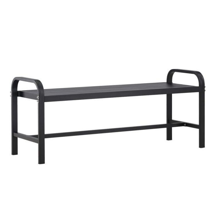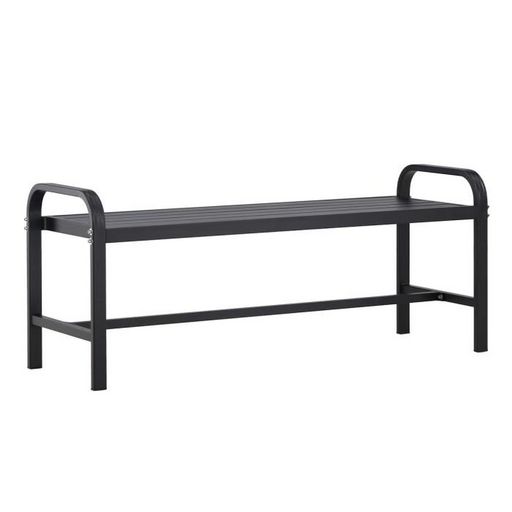 Informations Techniques : Dimensions : L. 125 x l. 42 x H. 52 cm Accoudoirs : l. 5 x H. 10 cm Matière : Aluminium Spécificités : Élégant & Pratique Banc d'extérieur design Avec accoudoirs arrondis Poids max supporté : 200 kg Poids : 4 kg Couleur : Noir