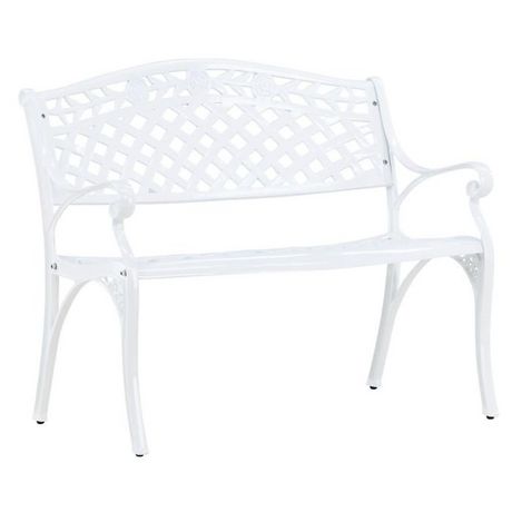 Informations Techniques : Dimensions : L. 100 x l. 60 x H. 87 cm Matière : Aluminium Spécificités : Fonctionnel & Esthétique Banc d'extérieur design Avec dossier et accoudoirs Poids max supporté : 200 kg Poids : 12,2 kg Couleur : Blanc
