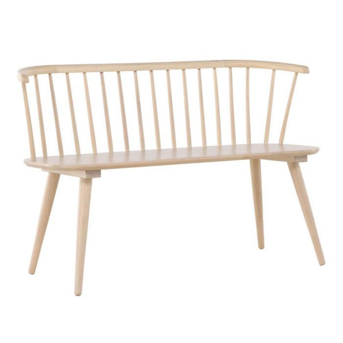 Informations Techniques : Dimensions : L. 120 x l. 49 x H. 76,5 cm Assise : L. 112 x l. 45 x H. 45 cm Matière : Bois (Hévéa) Spécificités : Élégant & Épuré Banc design Poids max supporté : 250 kg Poids : 11,8 kg Couleur : Naturel