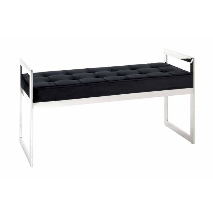 Informations Techniques : Dimensions : L. 100 x l. 40 x H. 57 cm Matières : Inox & Tissu Spécificités : Tendance & Moderne Banc design Structure en Inox (effet brillant) Assise Rembourrée en Velours Livré Démonté Facile d'Entretien & d'Utilisation Nombre de colis : 1 Poids : 9,99 kg Couleur : Noir