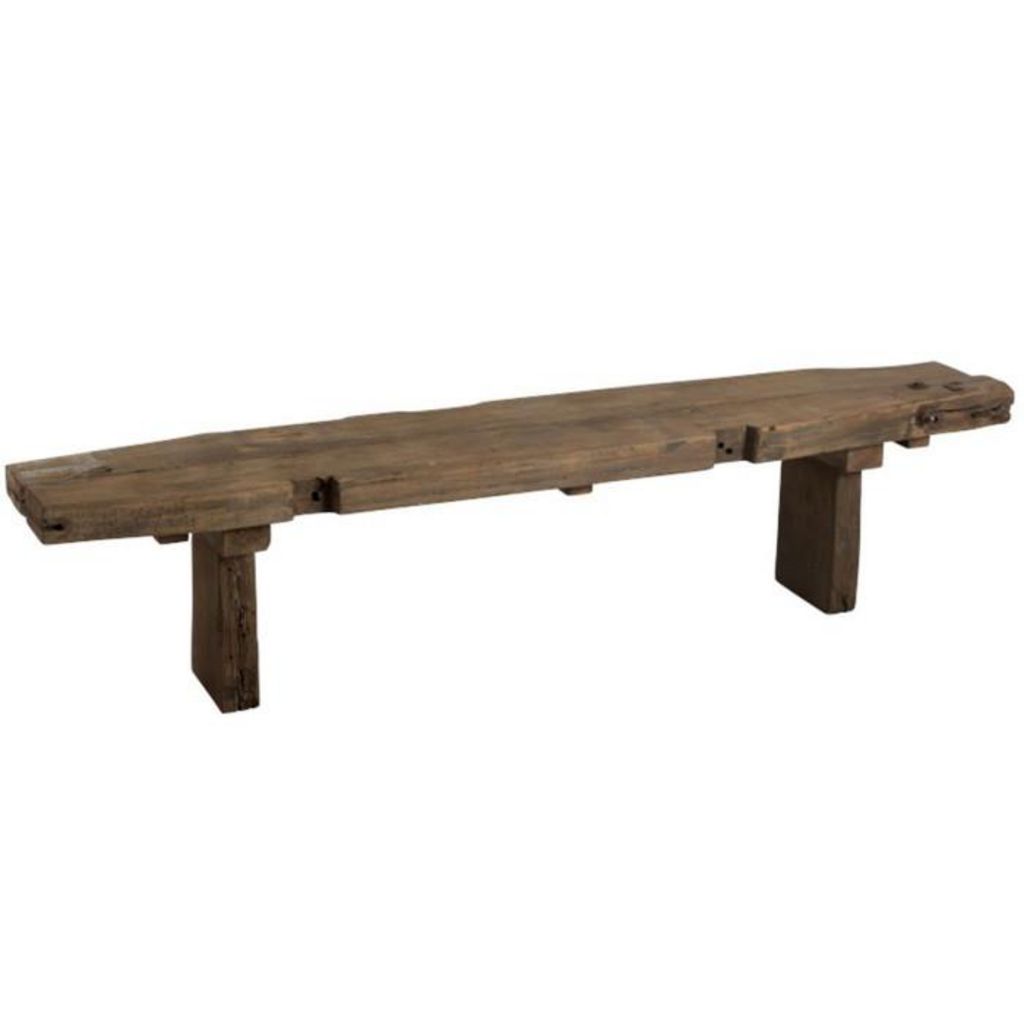 Informations Techniques : Dimensions : L. 180 x l. 35 x H. 45 cm Matière : 100% Bois (Recyclé) Spécificités : Tendance & Original Aspect authentique Bois brut recyclé Monté sur 2 pieds Poids : 52 kg Couleur : Marron
