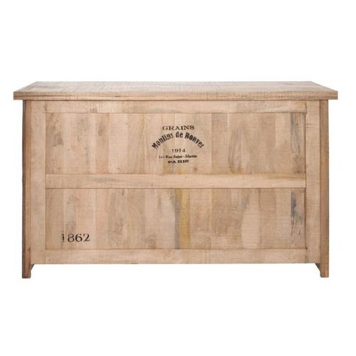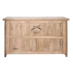 Informations Techniques : Dimensions : L. 180,5 x l. 55 x H. 104,5 cm Matière : 100% Bois (Manguier) Spécificités : Robuste & Vintage Bar rectangulaire 3 tiroirs Avec inscriptions Poids : 82,85 kg Couleur : Naturel