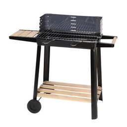 Informations Techniques : Dimensions : L. 85,5 x l. 41,5 x H. 78 cm Cuve : L. 52 x l. 30 cm Surface de Cuisson : L. 49 x l. 28 cm Matière : Acier & Bois Spécificités : Pratique & Utile Barbecue à Charbon de Bois Nombre de Personnes : 6-8 1 Grille de Cuisson Réglable Structure en Bois Chariot Stable