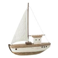 Bateau 1 Voile en Bois Gene 46cm Naturel & Blanc