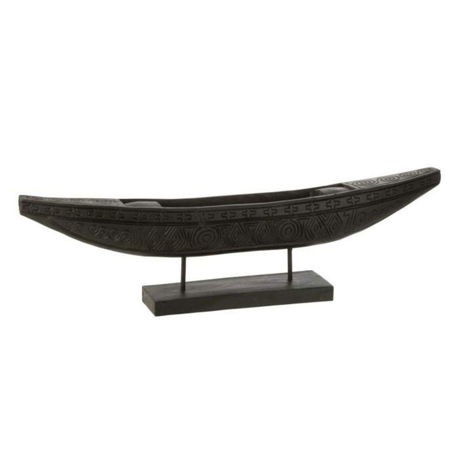 Informations Techniques : Dimensions : L. 100 x l. 14 x H. 30 cm Matière : 100% Bois (Albasia) Spécificités : Déco & Naturel Bateau sur pied Motifs ton sur ton Poids : 3,36 kg Couleur : Noir
