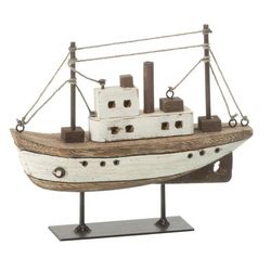 Bateau sur Socle en Bois Gene 18cm Naturel & Blanc