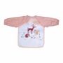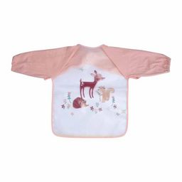 Informations Techniques : Dimensions : L. 43 x l. 32 cm Matières : PEVA & Tissu Spécificités : Pratique & Utile Bavoir Bébé Manches Longues Imprimé Forêt Magique Poids : 0,063 kg Couleur : Rose & Blanc