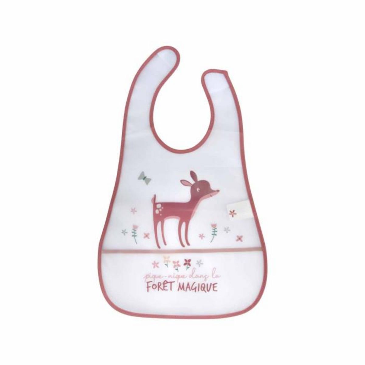 Informations Techniques : Dimensions : L. 45 x l. 28 cm Matières : Plastique Spécificités : Pratique & Utile Bavoir Scratch Récupérateur Avec Poche Imprimé Faon Poids : 0,03 kg Couleur : Blanc