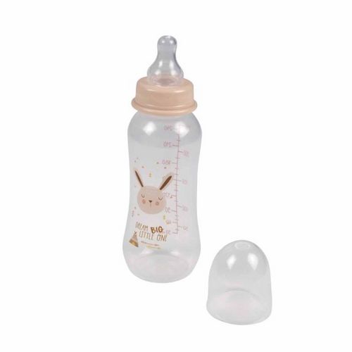 Informations Techniques : Capacité : 250 ml Matières : Contenant : Plastique Tétine : Silicone Spécificités : Biberon pour Bébé Incassable & Col Étroit Tétine Flux Variable (nouveau-né , + de 3 mois , + de 6 mois) A Motifs Facile d'utilisation & d'entretien Poids : 0,08 kg Couleur : Beige & Trans