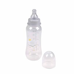 Informations Techniques : Capacité : 250 ml Matières : Contenant : Plastique Tétine : Silicone Spécificités : Biberon pour Bébé Incassable & Col Étroit Tétine Flux Variable (nouveau-né , + de 3 mois , + de 6 mois) A Motifs Facile d'utilisation & d'entretien Poids : 0,08 kg Couleur : Gris & Transp