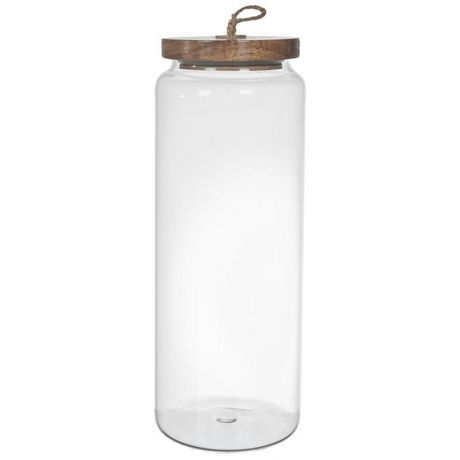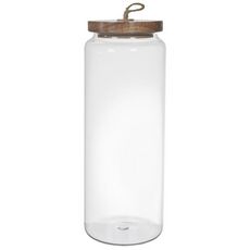 Informations Techniques : Dimensions : D. 10 x H. 27,5 cm Matières : 60% Verre, 38% Bois (Acacia) & 2% Silicone Spécificités : Pratique & Utile Couvercle en bois Fermeture hermétique Forme ronde Contenance : 1,85 L Poids : 8,11 kg Couleur : Transparent & Naturel