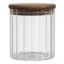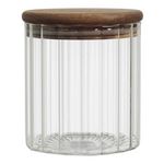 Informations Techniques : Dimensions : D. 9 x H. 10,5 cm Matières : 80% Verre & 20% Bois (Acacia) Spécificités : Design & Pratique Bocal de conversation Avec couvercle en bois Contenance : 50 cl Poids : 0,22 kg Couleur : Transparent & Naturel
