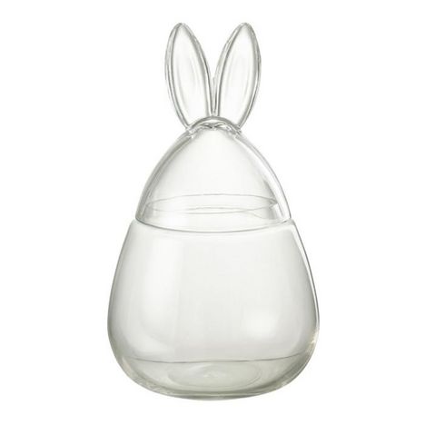 Informations Techniques : Dimensions : D. 20 x H. 34 cm Matière : Verre Spécificités : Déco & Utile Bocal Design Couvercle Style Oreilles de Lapin Forme Ronde Poids : 1,6 kg Couleur : Transparent