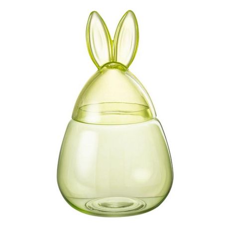 Informations Techniques : Dimensions : D. 20 x H. 34 cm Matière : Verre Spécificités : Déco & Utile Bocal design Couvercle style oreilles de lapin Forme ronde Poids : 1,43 kg Couleur : Vert