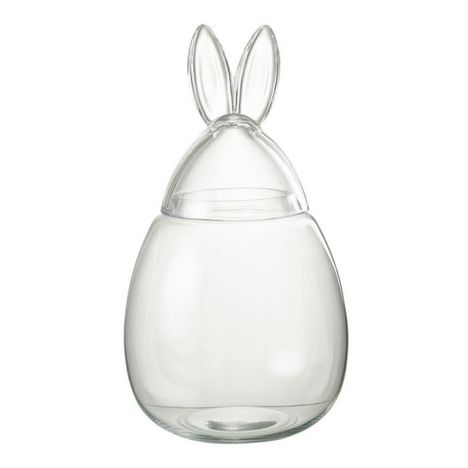 Informations Techniques : Dimensions : D. 22,5 x H. 39 cm Matière : Verre Spécificités : Déco & Utile Bocal design Couvercle style oreilles de lapin Forme ronde Poids : 1,52 kg Couleur : Transparent