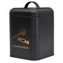 Informations Techniques : Dimensions : L. 14 x l. 14 x H. 22 cm Matière : 100% Métal Spécificités : Chic & Pratique Boîte de conservation Couvercle avec poignée Inscription Confiserie dorée Poids : 0,3 kg Couleur : Noir & Doré