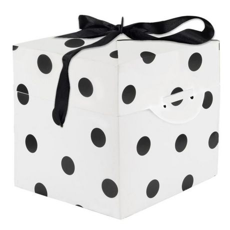 Informations Techniques : Dimensions : L. 13 x l. 13 x H. 13 cm Matière : Papier Spécificités : Pratique & Utile Boîte Cadeau Couvercle intégré Forme Carrée Fonction Pliable Facile à Monter Poids : 0,035 kg Couleur : Noir & Blanc