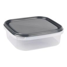 Informations Techniques : Dimensions : L. 19,5 x l. 19,5 x H. 6 cm Matière : Plastique Spécificités : Pratique & Utile Boîte de conservation Avec couvercle Contenance : 1,3 L Poids : 0,16 kg Couleur : Anthracite