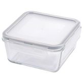Informations Techniques : Dimensions : L. 17 x l. 17 x H. 8,5 cm Matière : Verre Spécificités : Pratique & Utile Boîte de Conservation Forme Carrée Hermétique Avec Clips Convient Congélation & Four Contenance : 1,2 L Couleur : Taupe