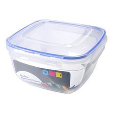 Informations Techniques : Dimensions : L. 22,5 x l. 22,5 x H. 12,5 cm Matière : Plastique Spécificités : Pratique & Utile Boîte de Conservation Forme Rectangulaire Avec Clips Contenance : 3,75 L Couleur : Bleu