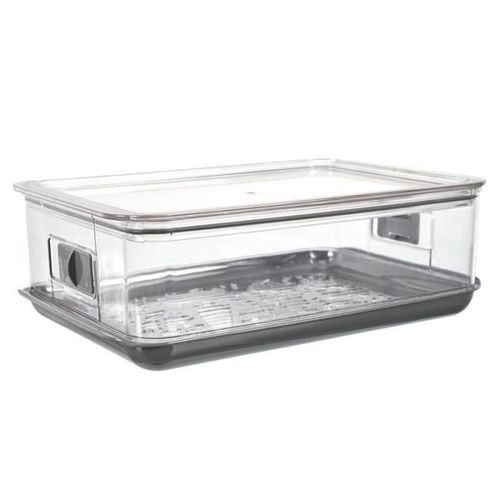 Informations Techniques : Dimensions : L. 27,1 x l. 18 x H. 9,2 cm Matière : Plastique Spécificités : Pratique & Efficace Boîte de conservation Pour Fruits & Légumes Capacité : 3,5 L Couleur : Transparent & Gris