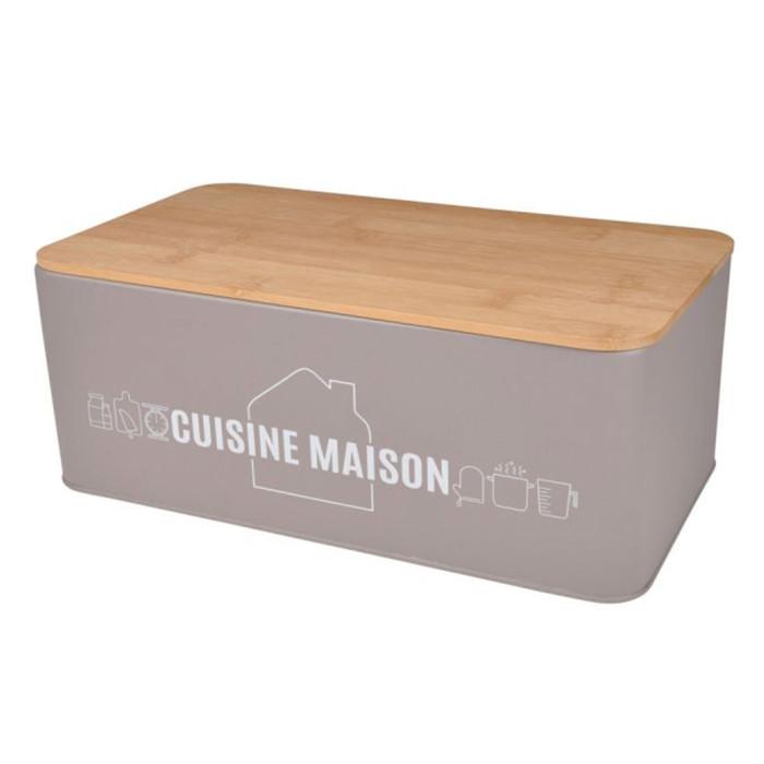 Informations Techniques : Dimensions : L. 33 x l. 18 x H. 12 cm Matières : Métal & Bambou Spécificités : Pratique & Astucieux Boîte de Conservation Forme Rectangulaire Couvercle en Bambou Inscription Cuisine Maison Couleur : Taupe & Naturel