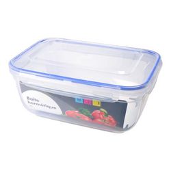 Informations Techniques : Dimensions : L. 27 x l. 20 x H. 13 cm Matière : Plastique Spécificités : Pratique & Utile Boîte de Conservation Forme Rectangulaire Hermétique Avec Clips Contenance : 4 L Couleur : Bleu