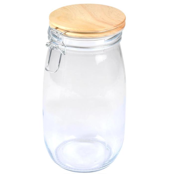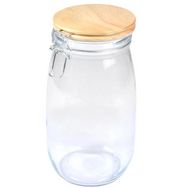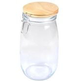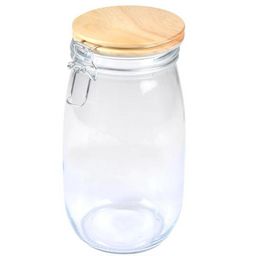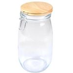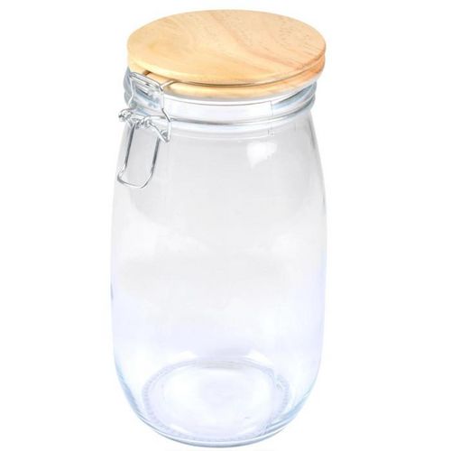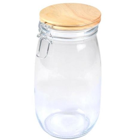 Informations Techniques : Matières : Verre, Métal & Bambou Spécificités : Pratique & Astucieux Boîte de Conservation Hermétique Forme Ronde Clip en Métal Avec Couvercle Bambou Contenance : 1,4 L Facile d'Utilisation & d'Entretien Couleur : Beige & Transparent