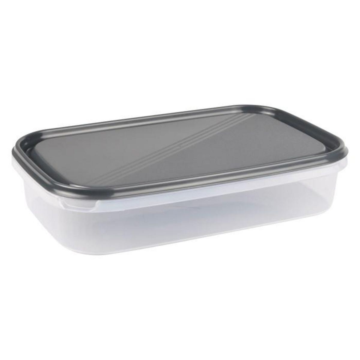 Informations Techniques : Dimensions : L. 29 x l. 19 x H. 6 cm Matière : Plastique Spécificités : Pratique & Utile Boîte de conservation Avec couvercle Contenance : 2 L Poids : 0,24 kg Couleur : Anthracite