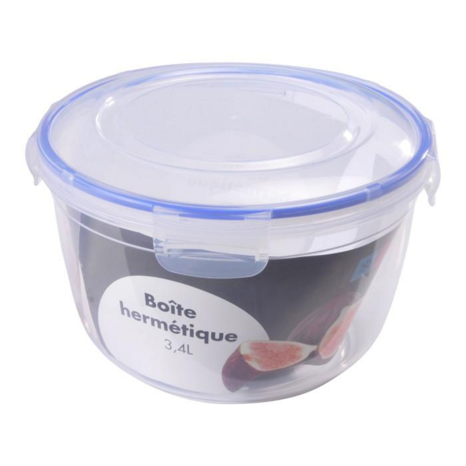 Informations Techniques : Dimensions : D. 20 x H. 12,5 cm Matière : Plastique Spécificités : Pratique & Utile Boîte de Conservation Forme Ronde Hermétique Avec Clips Contenance : 3,4 L Couleur : Bleu