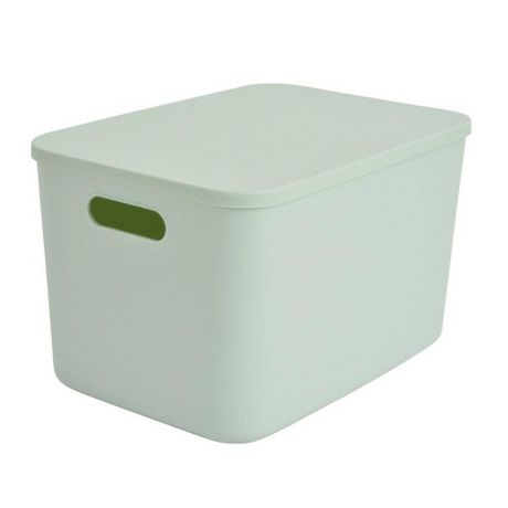 Informations Techniques : Dimensions : L. 35,5 x l. 25,5 x H. 23 cm Matière : Plastique Spécificités : Pratique & Utile Boite de rangement Avec couvercle et poignées Design uni opaque Forme rectangulaire Capacité : 15,5 L Poids : 0,55 kg Couleur : Sauge